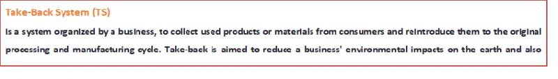 Sistemul Take-back nu este doar eliminarea resturilor de produs atunci când oamenii îl predau pentru reciclare. Înseamnă că puteți reutiliza cel puțin o parte din produs în noile produse pe care le folosiți.
