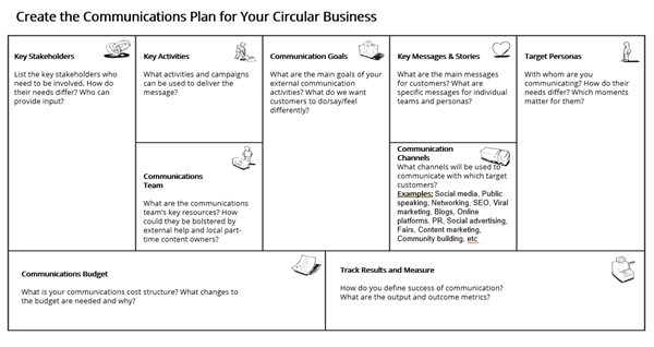 Mesajul economiei circulare trebuie comunicat strategic atât intern, cât și extern. Mesajele pot fi comunicate prin aceleași canale folosite pentru responsabilitatea socială corporativă și sustenabilitate sau pot utiliza orice număr de canale de comunicare externă care se concentrează exclusiv pe economia circulară.